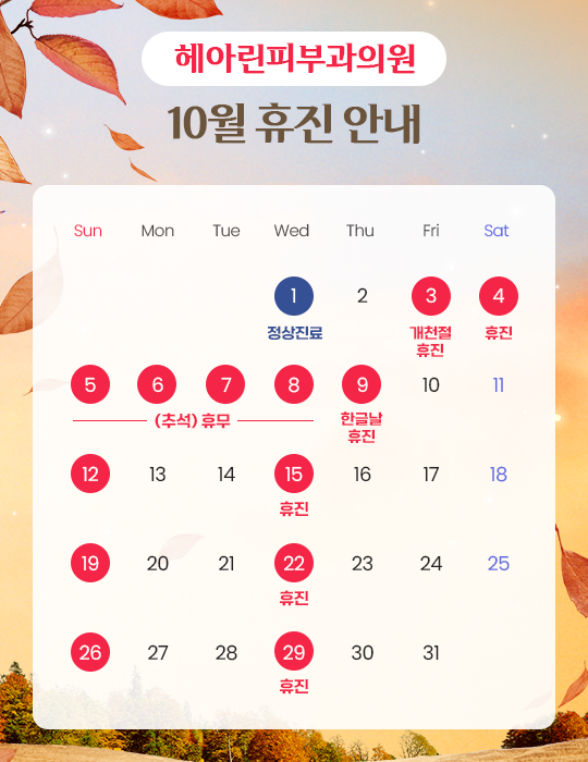 * 수요일 휴진 (단, 주중 공휴일 있을 경우는 수요일 진료합니다.)